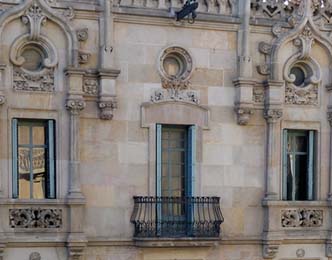 The façade is an impressive, varied and harmonious mass of undulating stone without straight lines where also the forged iron is present in the shapes of balconies imitating vegetal forms.