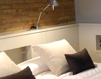 Bedroom 3 large attractive bedroom with original brickwork, twin beds (used as a double 180x190). Sitting area with small sofa, flat screen TV. Ensuite bathroom, bath, WC, And Handbasin.(Sleeps 2)