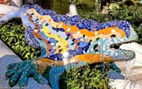 Park Güell is skillfully designed and composed to bring the peace and calm that one would expect from a park. The buildings flanking the entrance, though very original and remarkable with fantastically shaped roofs with unusual pinnacles, fit in well with the use of the park as pleasure gardens and seem relatively inconspicuous in the landscape when one considers the flamboyance of other buildings designed by Gaudí.